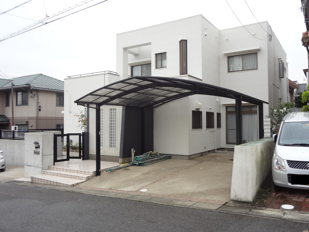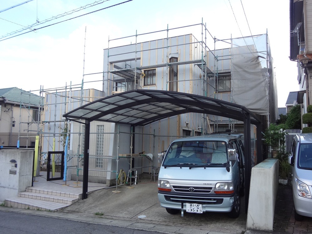 外壁が古くなったので既存の外壁の上に新しい外壁を重ね張りし、庭・玄関まわりの擁壁の高圧洗浄を行いました。