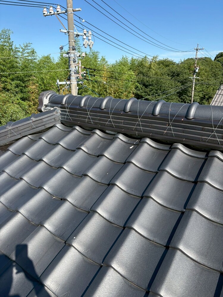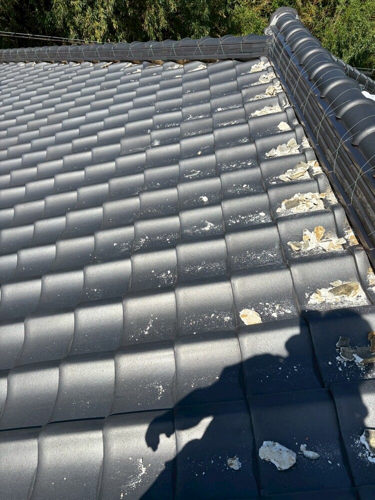建物が古くなりボロボロ漆喰が落ちてくるとお客様から連絡頂き、屋根瓦の漆喰撤去・詰め直し修繕工事を行ないました。